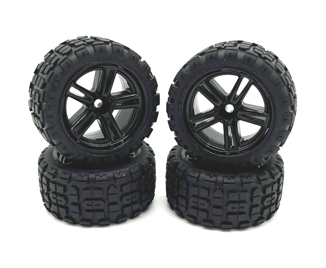 Ready-to-run Mini Trek MT wheels and tires. Pre-mounted and assembled for quick install. Durable tread for traction and rugged everyday RC bashing or replacing worn stock rubber. Affordable 4-pack upgrade or spare set.