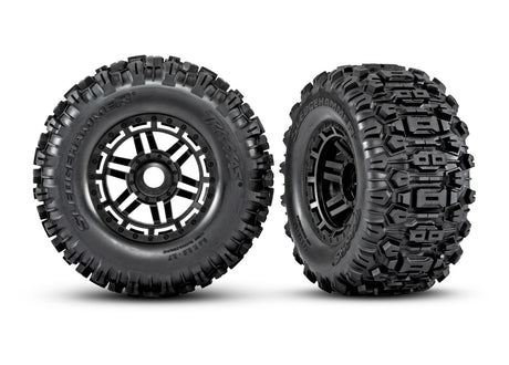 Traxxas: 3.8" Black Wheels & Belted Sledgehammer Tires (2)