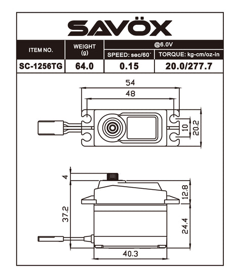Savox: SC-1267SG High Torque Digital Servo 0.09sec / 277oz @ 7.4V