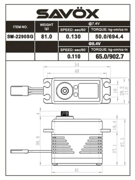 Savox - SB-2274-SG - High Voltage Brushless Digital Servo 0.080sec / 347.2oz @ 7.4V