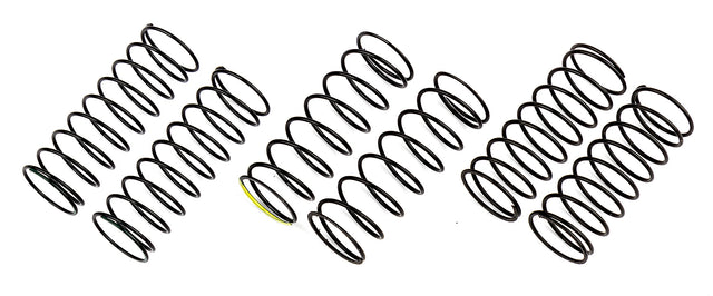 Factory Team 10mm Rear Spring Set, Green 10.0, Black 9.0, and Yellow 8.5.